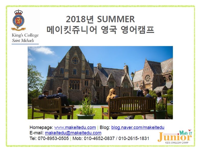 2018 여름 영국 영어캠프 프로그램이 나왔습니다.