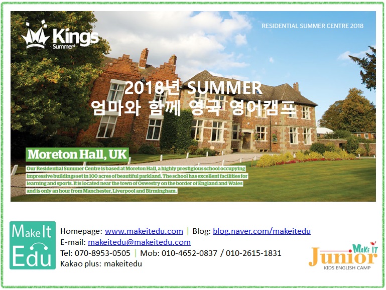 영국에서도 엄마와 아이가 함께 영어캠프에 참가할 수 있는 프로그램을 소개해 드립니다. 자세한 내용은 영어캠프->프로그램&제휴학교에서 확인하세요~