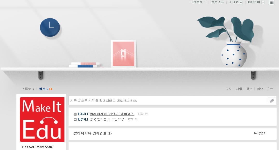 메이킷에듀 블로그 오픈했습니다. 자유롭게 글도 남기시고 영어교육관련 정보도 받아가세요~ http://blog.naver.com/makeitedu