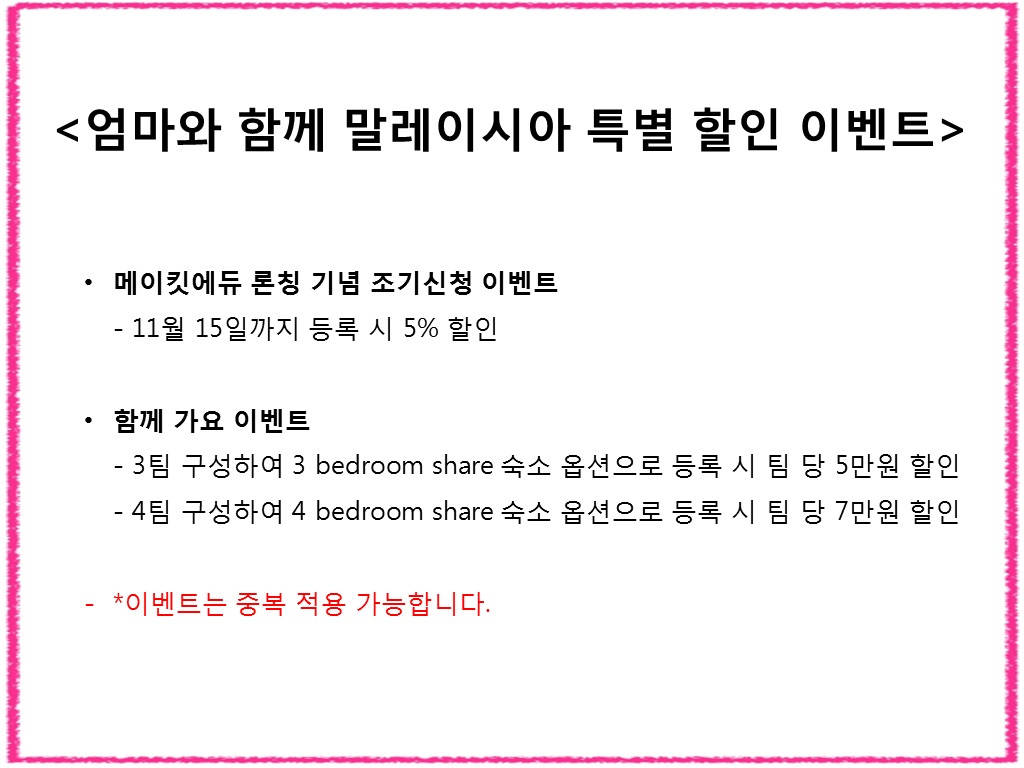 말레이시아 캠프 할인 이벤트 진행중입니다.
